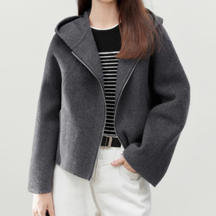 Gray Double-faced Woolen Goods Short Women’s Coat