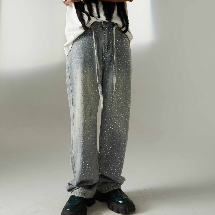 Distressed Washed Gray Jeans Men’s American Fashionable Loose